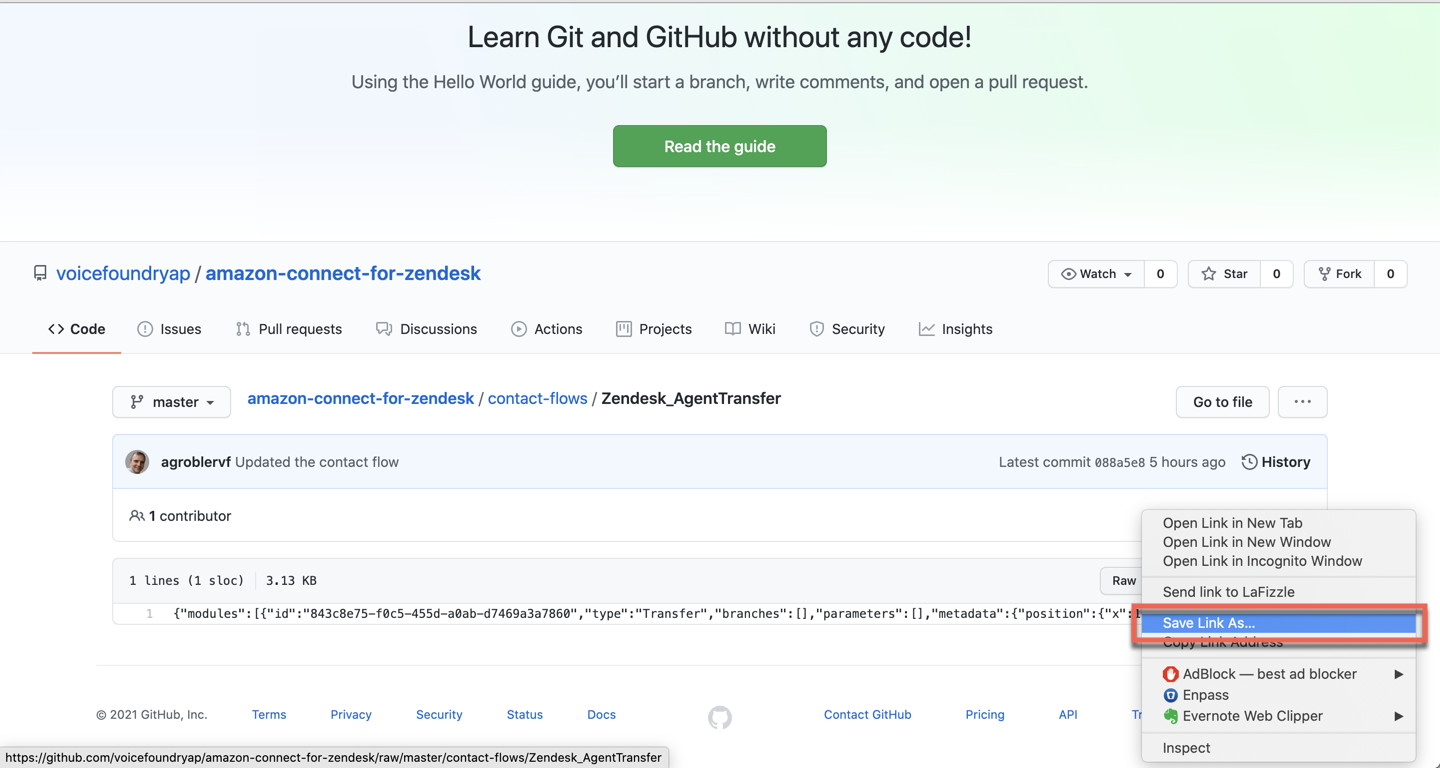 Click on the below link to view the Zendesk_AgentTransfer flow in our GitHub account.