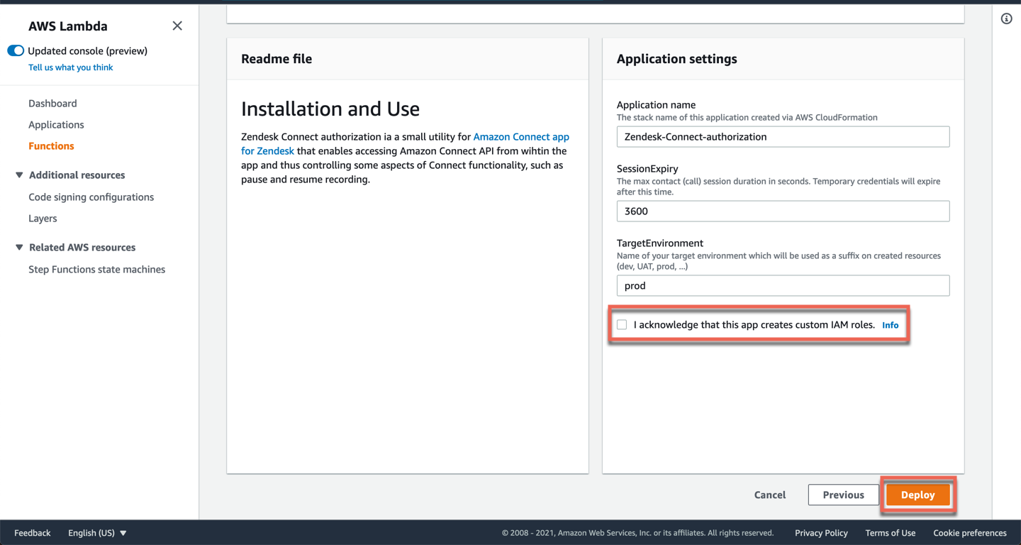 Select the checkbox to create custom IAM roles and click on Deploy.