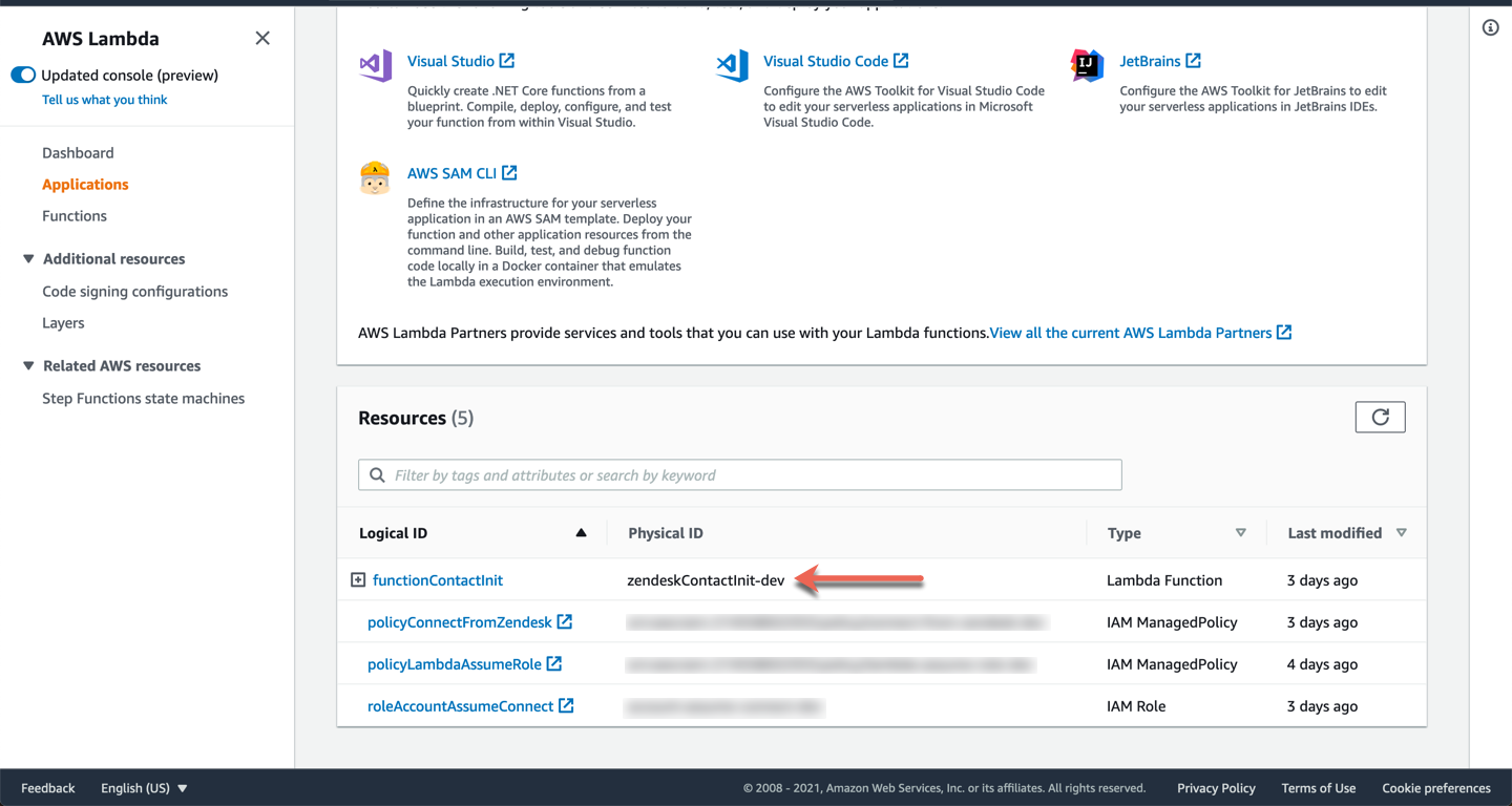 Once your stack has been successfully created, scroll down and take note of the lambda name.