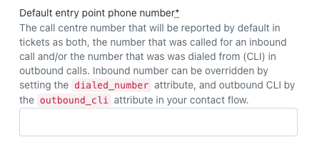 Enter the call centre number that will be reported in tickets as the number that the call was dialled from in outbound calls and the number that was called in inbound calls. This must be in E.164 format