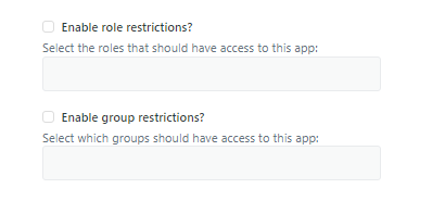 If you wish to have granular permissions to only allow certain groups or roles, access to this app, please configure them here.