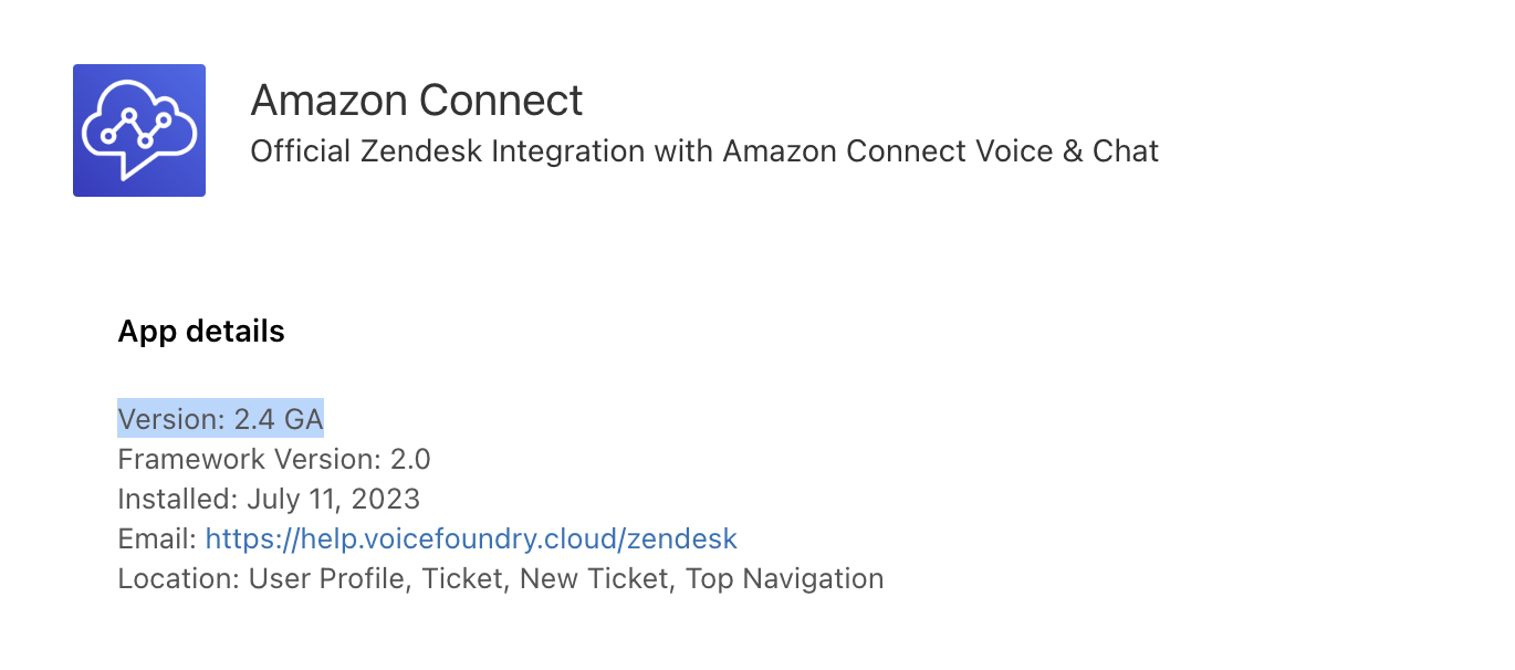 Why isn’t the Connect softphone loading in Zendesk? | If you have multiple installations of the Amazon Connect app, the URL advised in the softphone loading screen may be wrong. Check that that the URL is correct. We suggest only running one version of the app, unless you have different apps for different roles/groups and are using the permission settings within the app. |