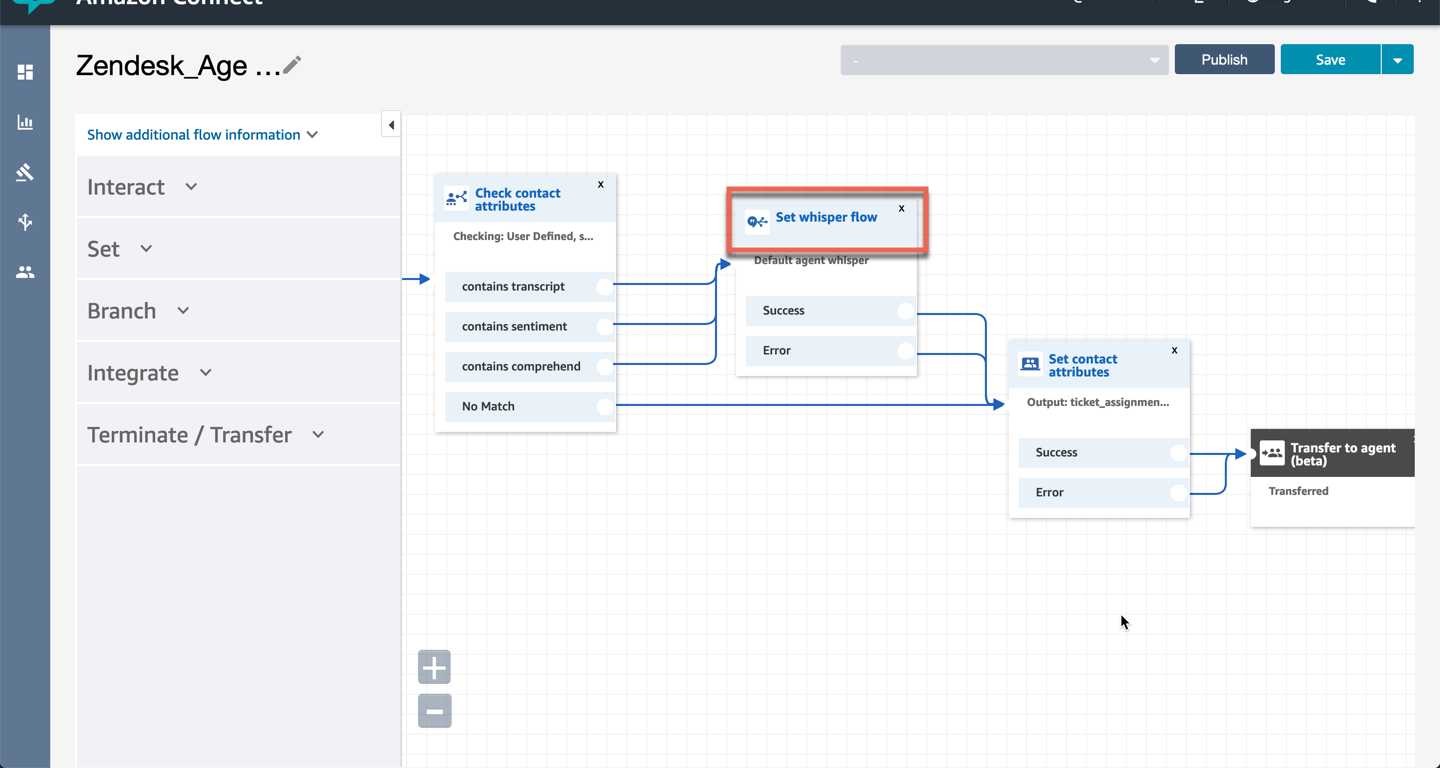 Set the flow to Zendesk_AgentWhisperFlow and click on save.