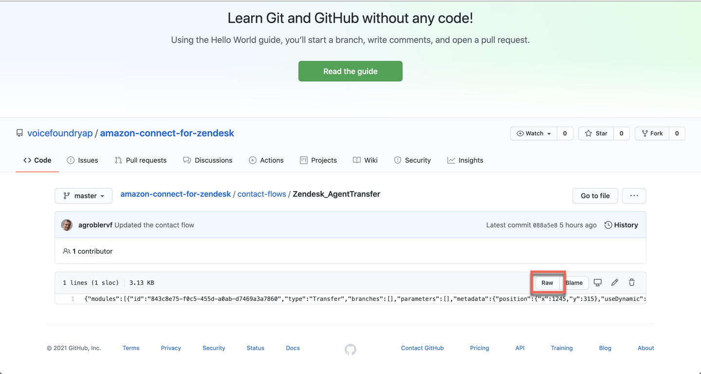 Click on the below link to view the Zendesk_AgentTransfer flow in our GitHub account.