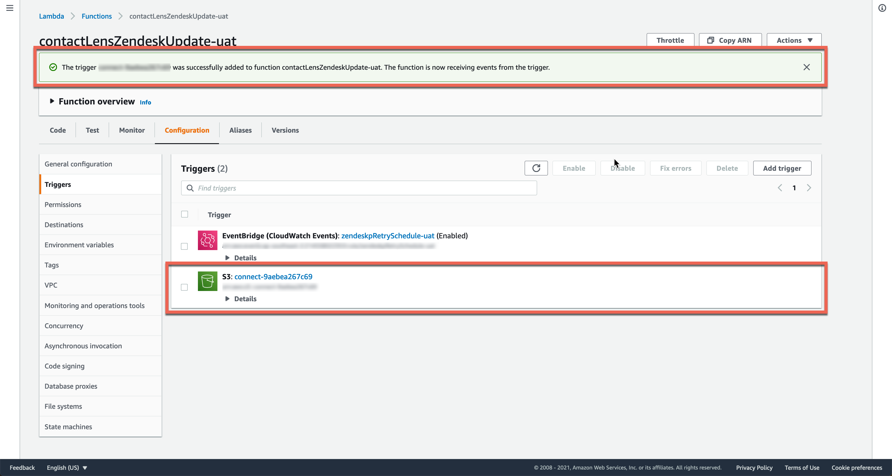 Find your Zendesk Contact Lens Lambda by searching for phrase “contactLensZendeskUpdate” and open it.