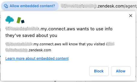 Amazon Connect for Zendesk will automatically detect if you’ve never interacted with your Connect console in such way (ie. in a separate browser tab), or haven’t done that in the past 30 days, and will automatically open a new tab with your Connect console.