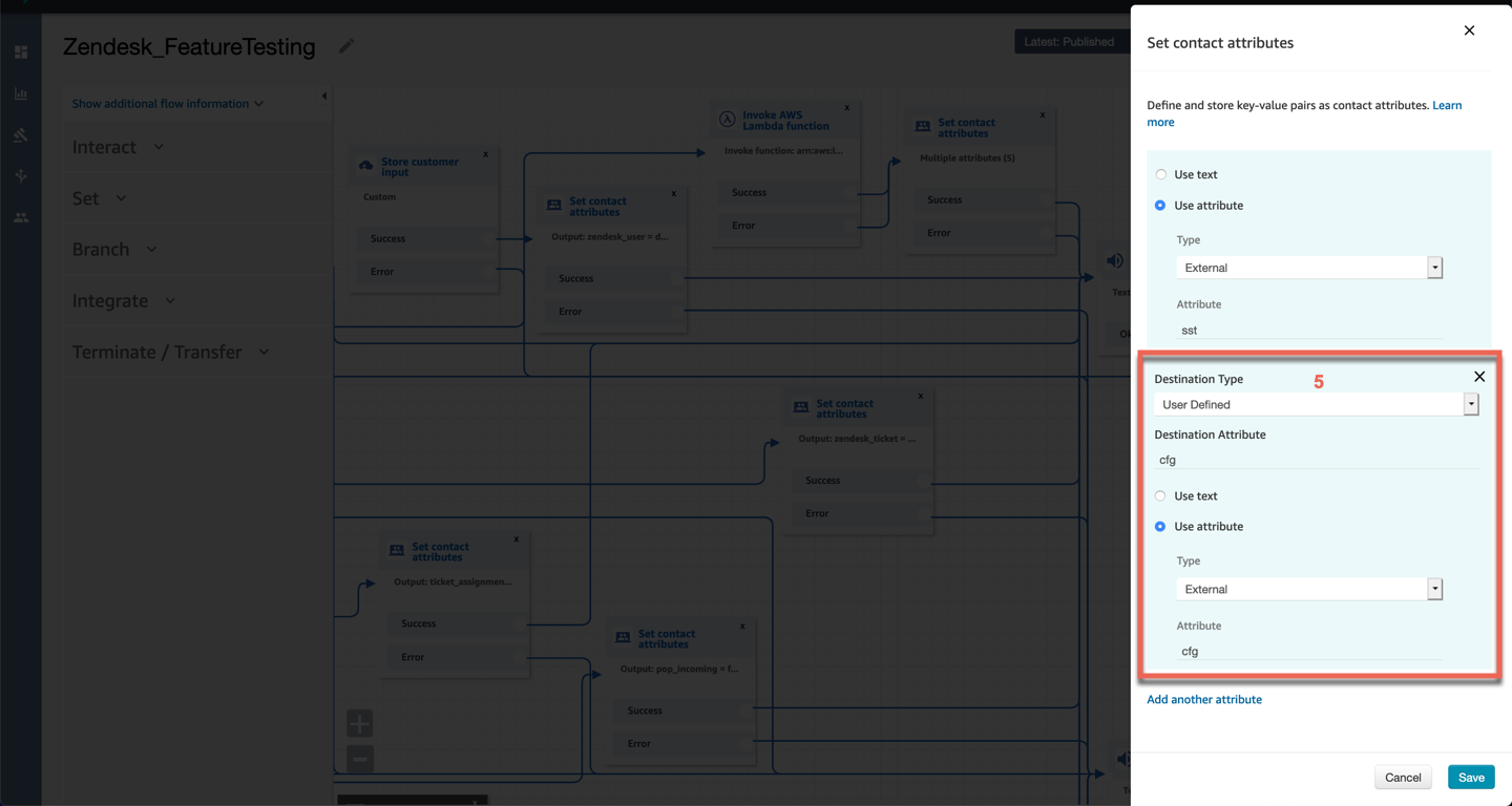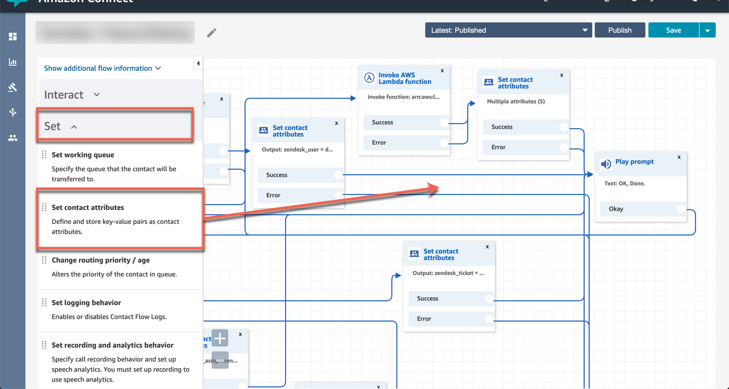 Click on Set and drag and drop the Set contact attributes block onto your contact flow.