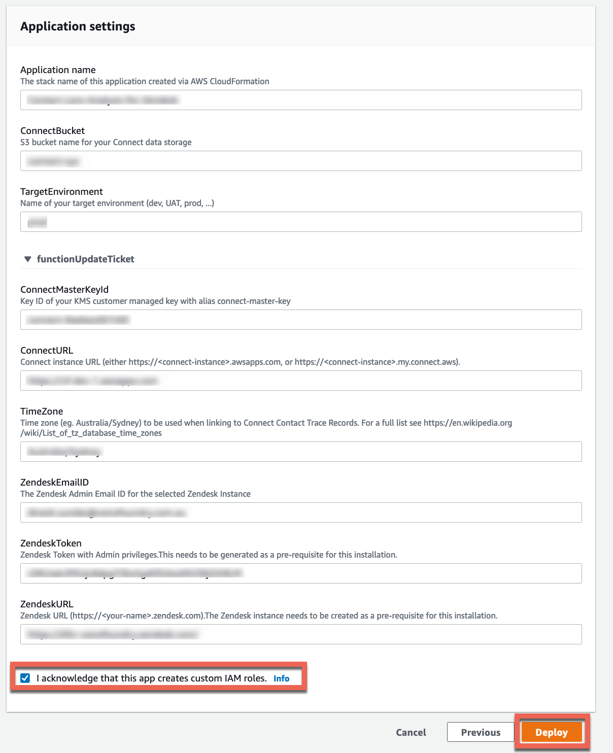 Select the checkbox to create custom IAM roles and click on Deploy.