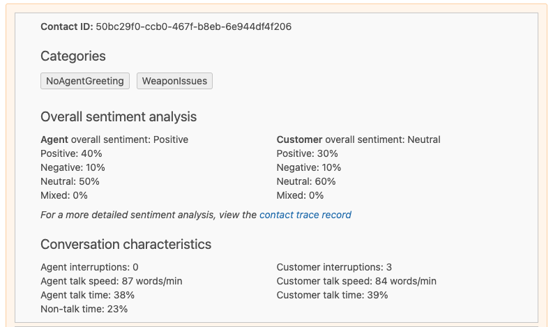 NOTE: The Amazon Connect app for Zendesk only supports analysis of redacted call recordings.