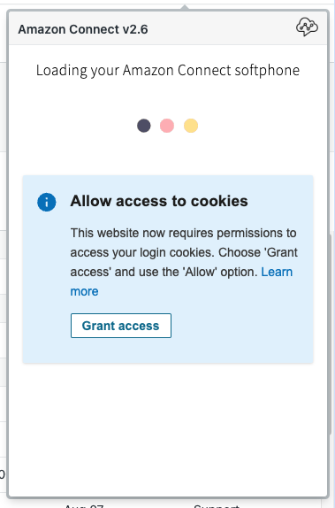Amazon Connect uses cookies for authentication. As part of Google's Privacy Sandbox initiative, Google Chrome has announced plans to block third-party cookies (that is, cookies passed between two top level domains). The change is scheduled to be phased in starting Q1 2024.