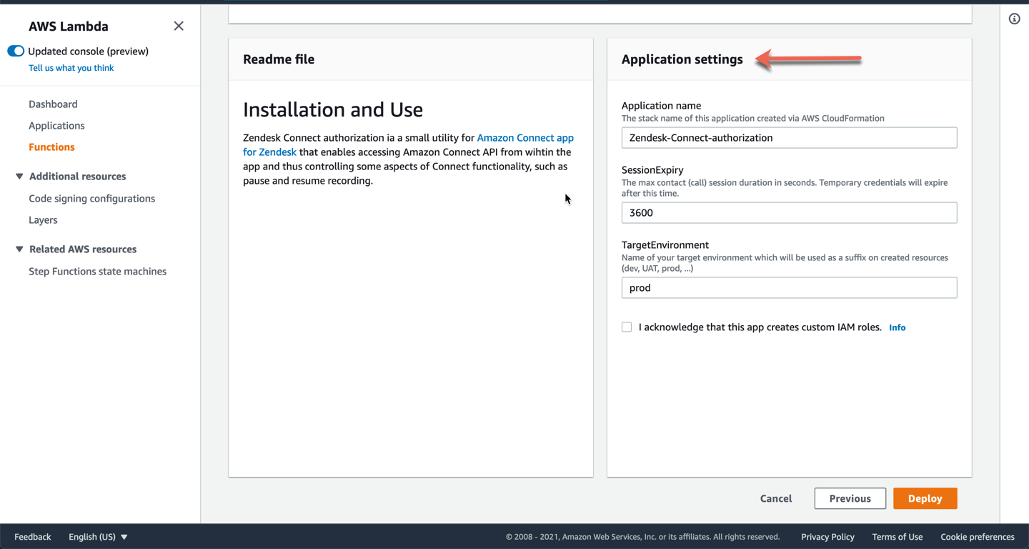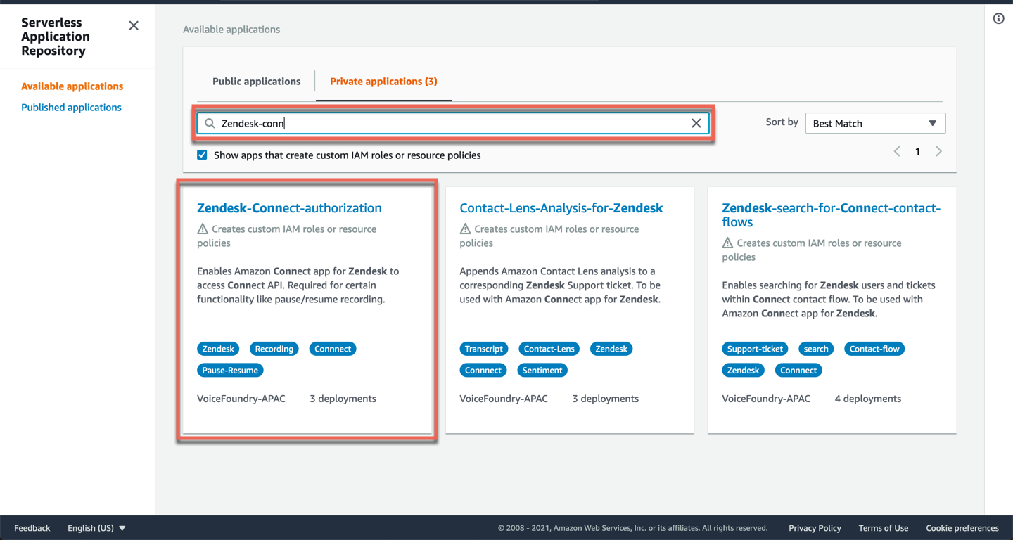 Under Public applications, select the checkbox Show apps that create custom IAM roles or resource policies.