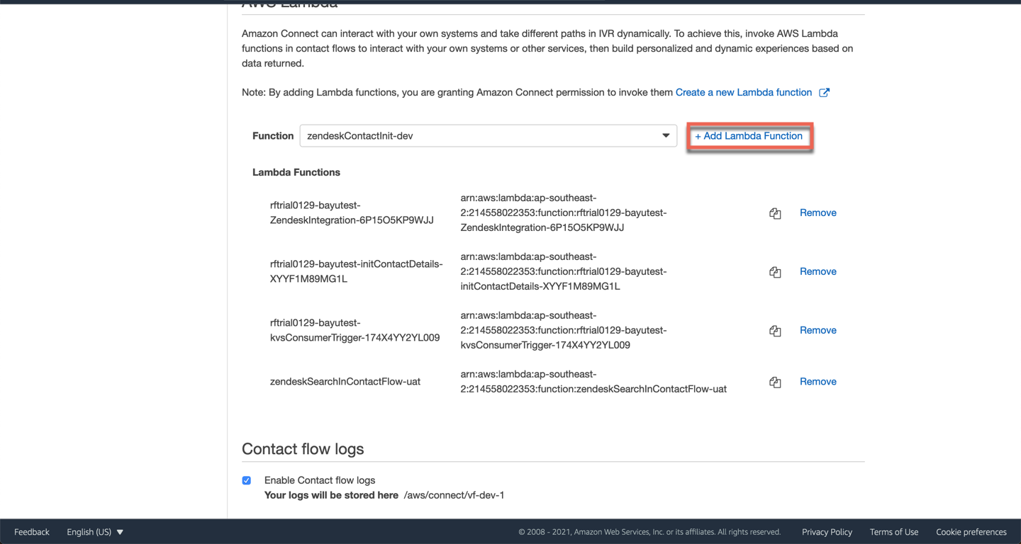 Your next step is to add the above lambda to every contact flow that you would like to enable pause and resume. See below for detailed steps. You can also use the supplied contact flow module.