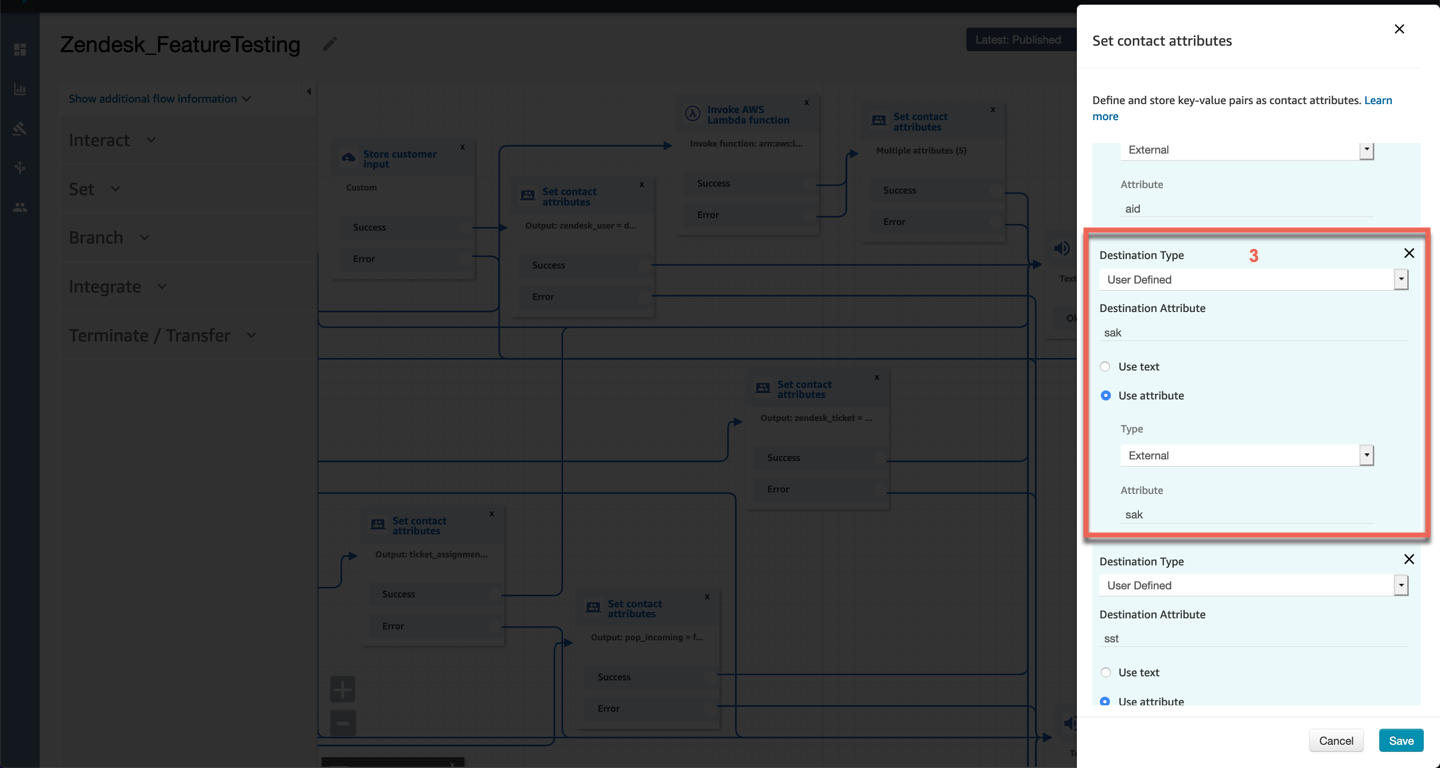 Click on Set and drag and drop the Set contact attributes block onto your contact flow.