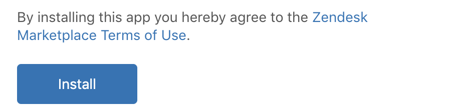 Once you have configured the app’s settings, review the Zendesk Marketplace Terms of Use and then click on install.