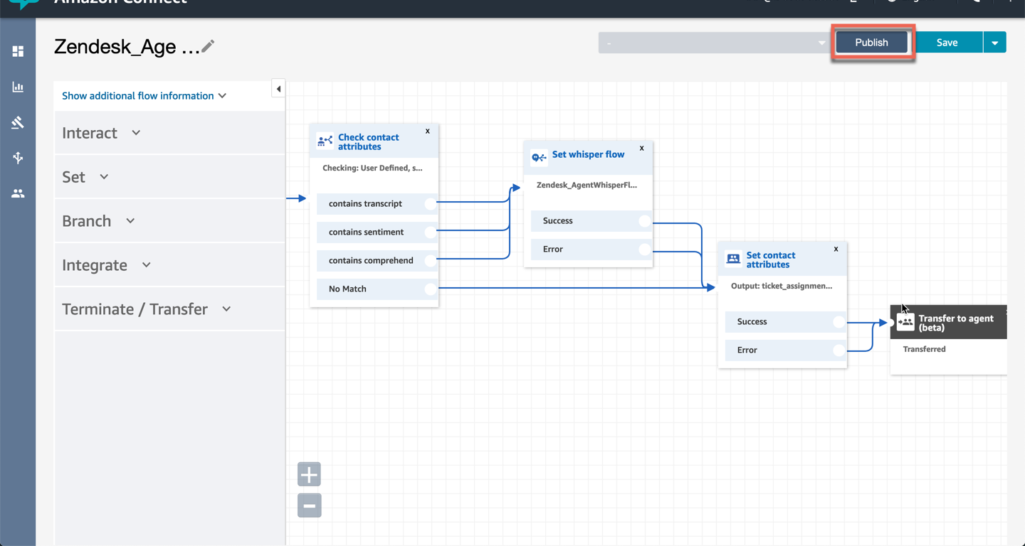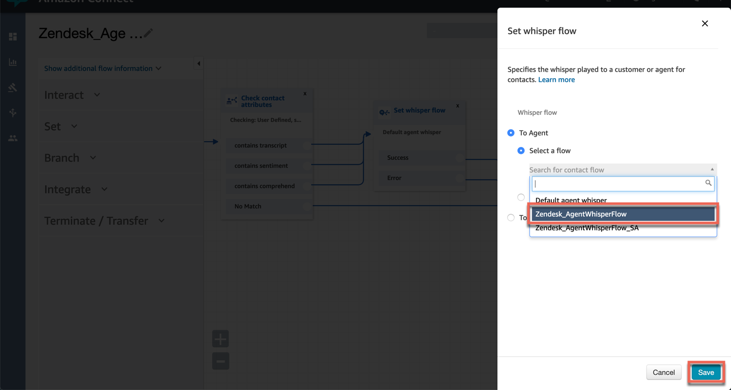 Set the flow to Zendesk_AgentWhisperFlow and click on save.