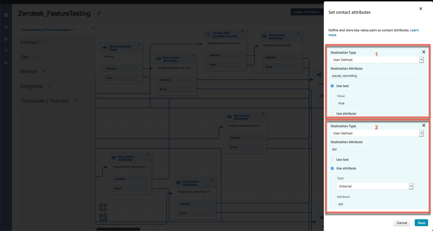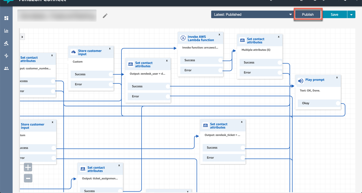 Your next step is to add the above lambda to every contact flow that you would like to enable pause and resume. See below for detailed steps. You can also use the supplied contact flow module.