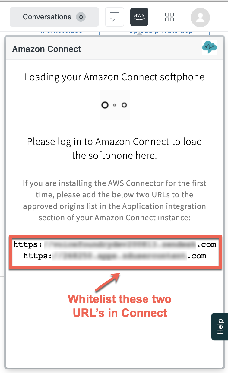 The app will display two URLs which need to be whitelisted in your Connect instance.