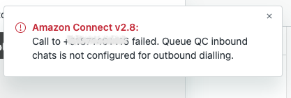Why can’t I make an outbound call, after selecting a certain queue from the outbound queue selector? Getting an error message instead: ![]() | The outbound queue selector lists all the queues that are in your Connect routing profile. Some of them may be dedicated to inbound calls or chats only and cannot be used to make outbound calls. It is good practice to name queues so that it’s clear from the name whether it can be used for outbound calls or not. If you believe a certain queue should be configured for outbound dialling, please speak to your Connect administrator. |
